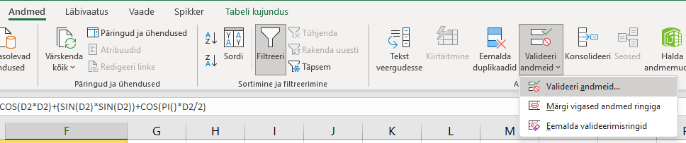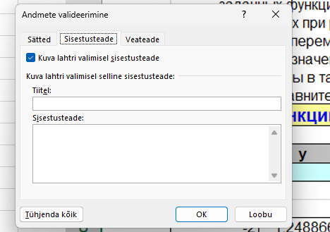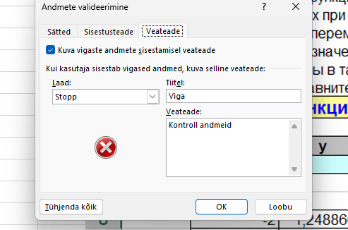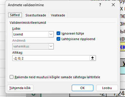 Valideerime andmeid, mis saab kasutada lahtrides:
