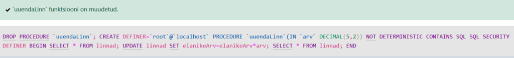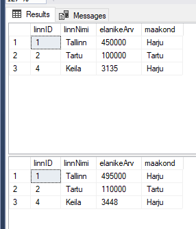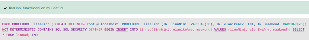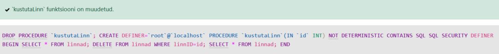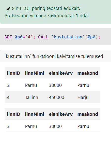 EXEC kustutaLinn @id=3;