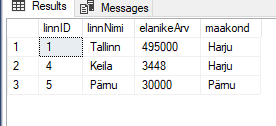 VALUES (@linnNimi, @elanikeArv, @maakond);