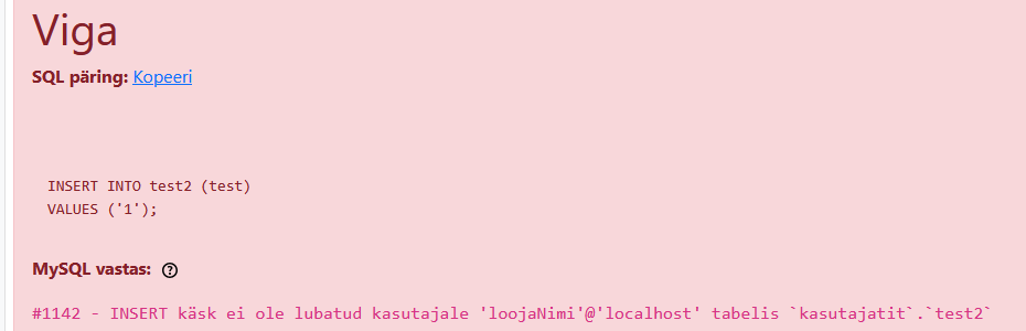 2. Проверь данные действия и покажи, что данный пользователь не может добавлять записи в таблицу.
