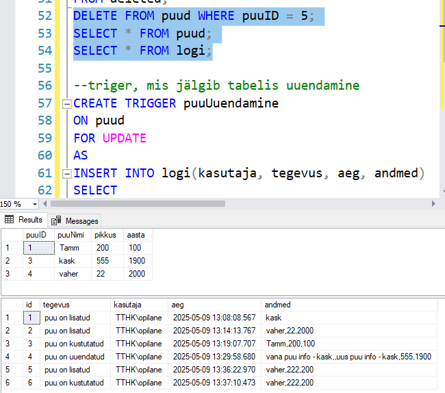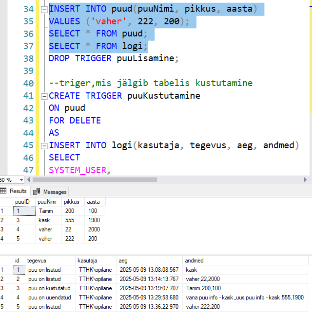 --Triger, mis jälgib tabeli puud täitmine(lisamine)